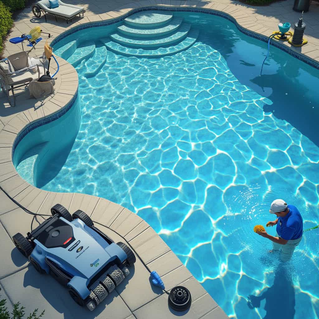 Um dos métodos de limpeza mais favorecidos é a limpeza manual. Essa abordagem econômica envolve o uso de redes de piscina, escovas e aspiradores portáteis. A limpeza manual coloca o proprietário da piscina no controle, permitindo que ele resolva detritos e manchas visíveis. O custo geral é relativamente baixo, oscilando em torno de US$ 20 a US$ 100 para ferramentas, mas requer um compromisso de tempo significativo a cada semana, o que pode ser impraticável para aqueles com um estilo de vida agitado.